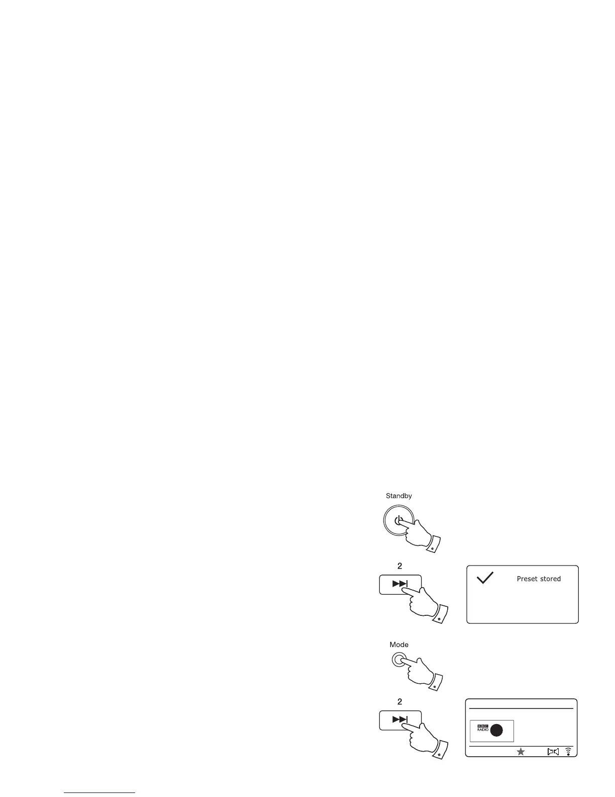 2. To store the currently playing radio station as a preset, press and hold the required
