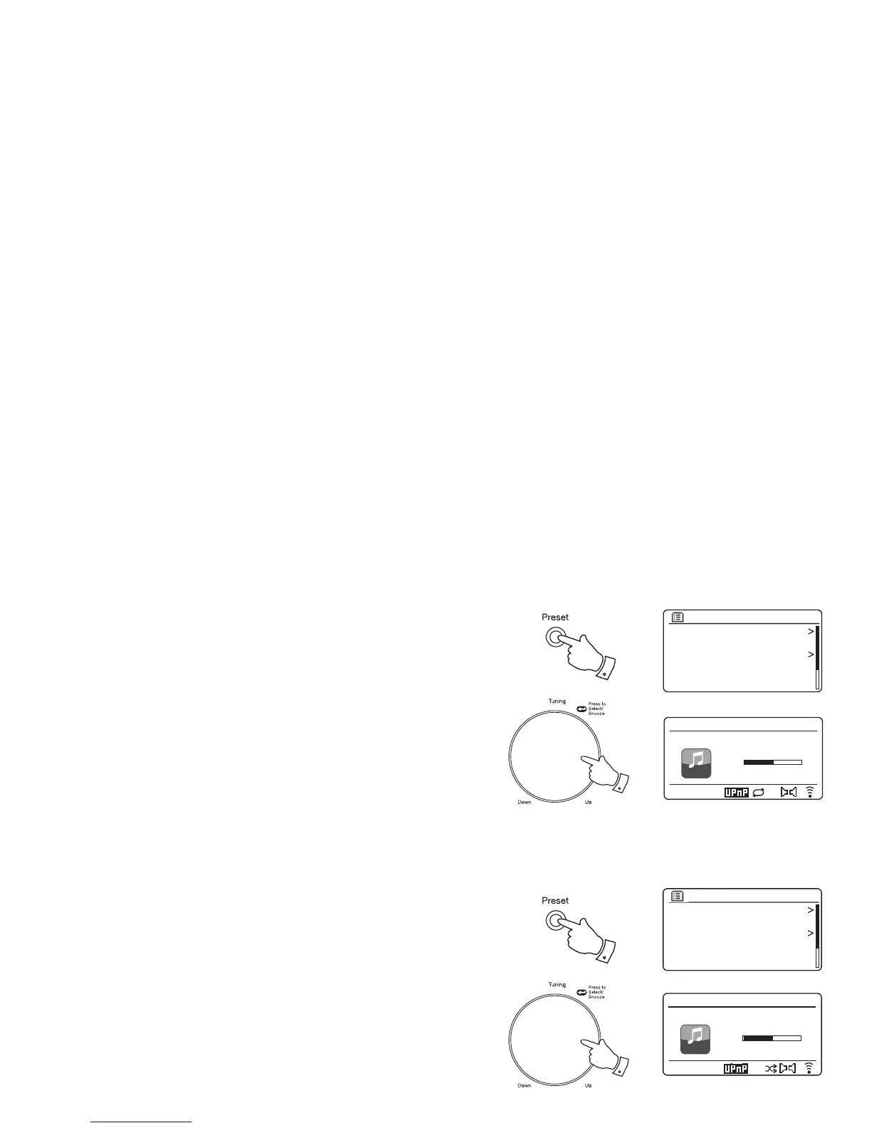 1. To enable or disable the Shuffl e option, press and hold the Preset button. The