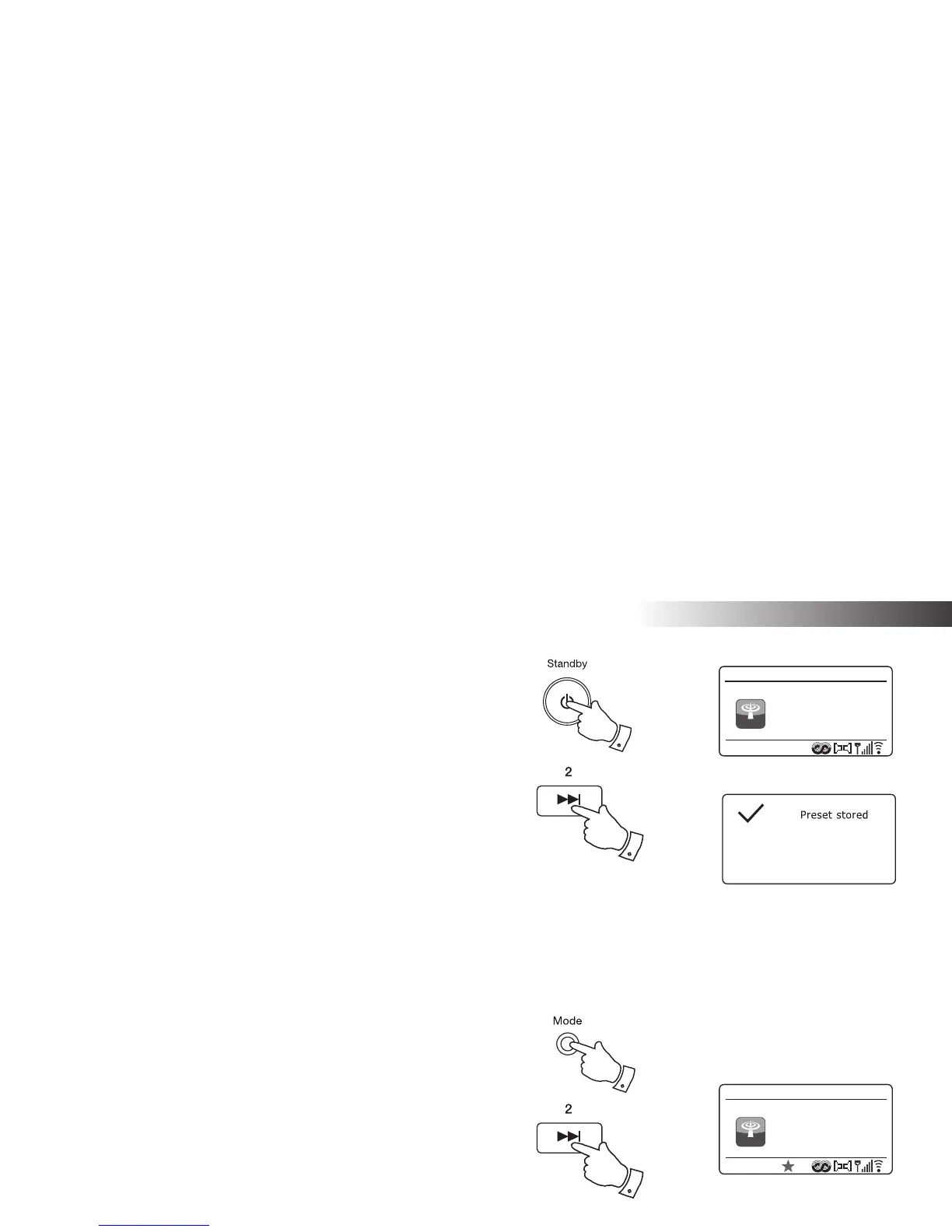 button (1 - 5) until the display shows 'Preset stored'. The station will
