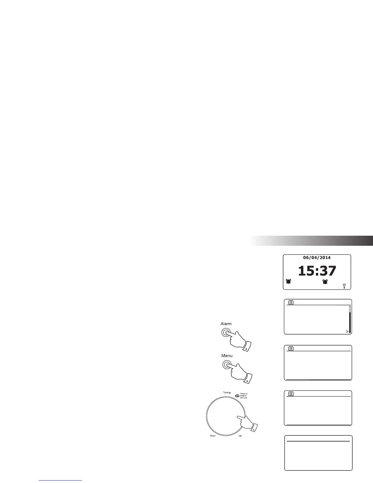 Alarms may be set while the radio is in standby mode or switched on.