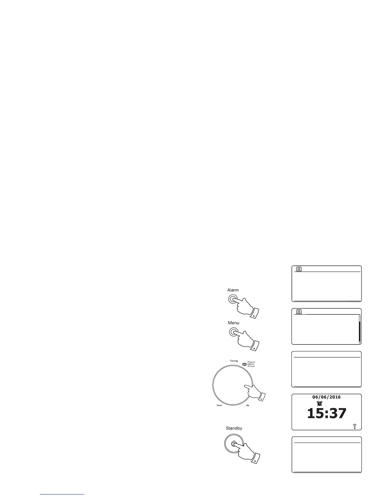 Alarm button. This will cause the Alarms menu to be displayed. Then skip