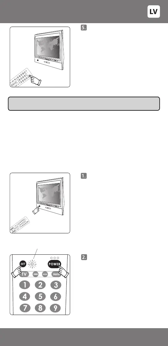 SVARĪGI: Pareizo kodu pierakstiet uz uzlīmes zem pults bateriju vāciņa.