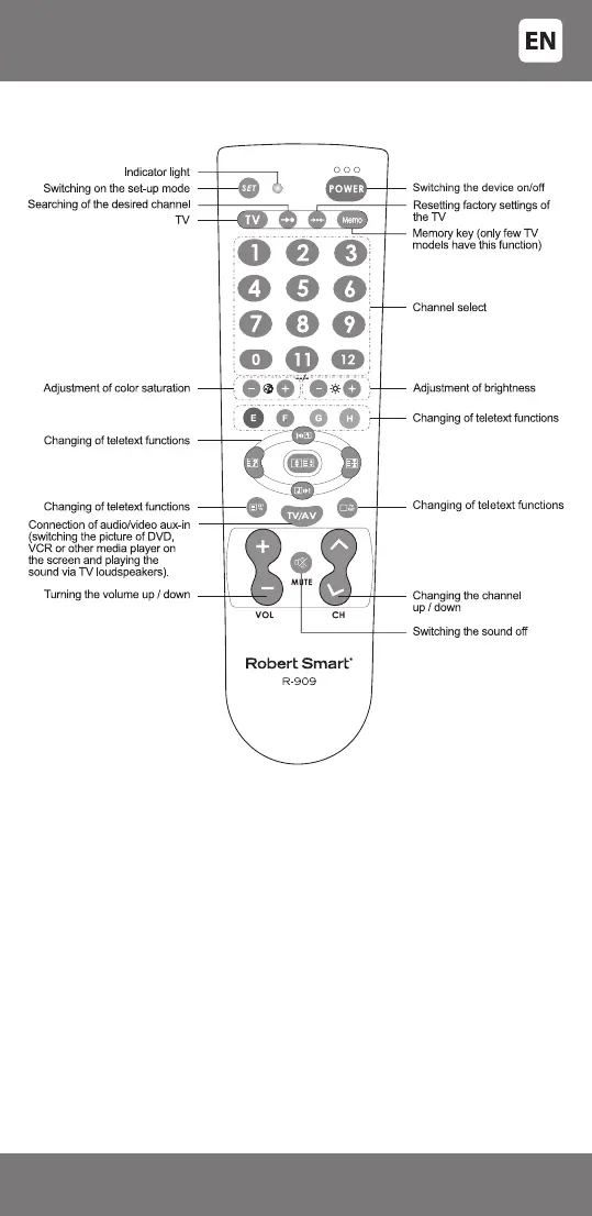 CONTROL KEYS OF THE TV AND CORRESPONDING FUNCTIONS