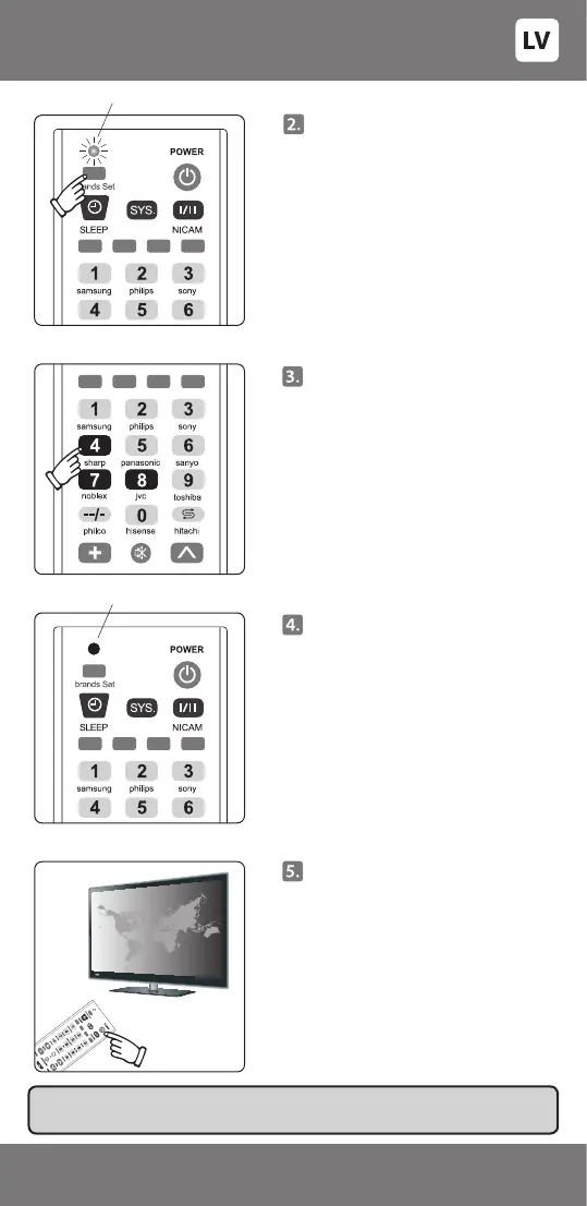 SVARĪGI: Pareizo kodu pierakstiet uz uzlīmes zem pults bateriju vāciņa.