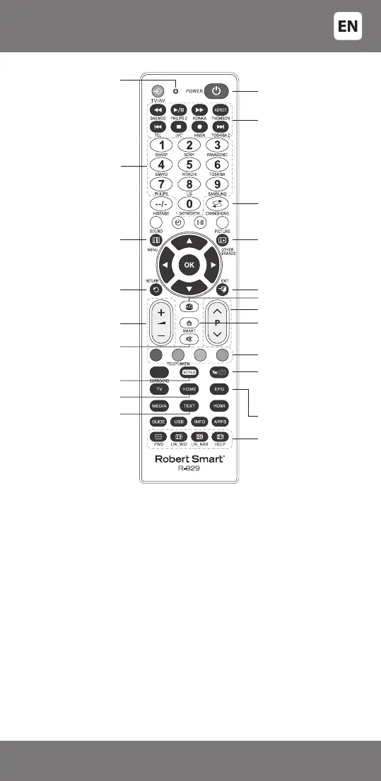 TV CONTROL KEYS AND CORRESPONDING FUNCTIONS