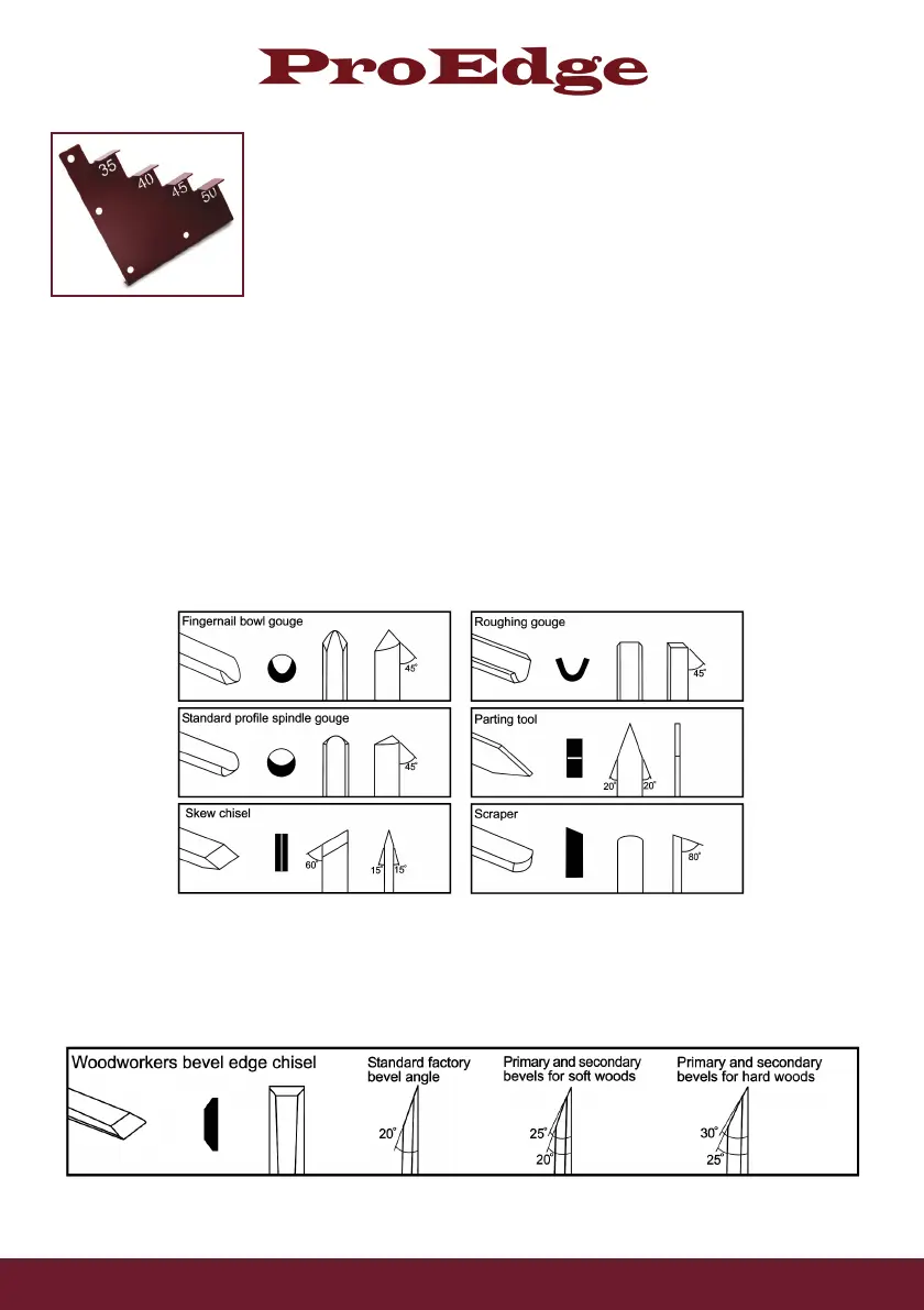 The diagrams on this page show details of the angles and proles supplied on Robert Sorby