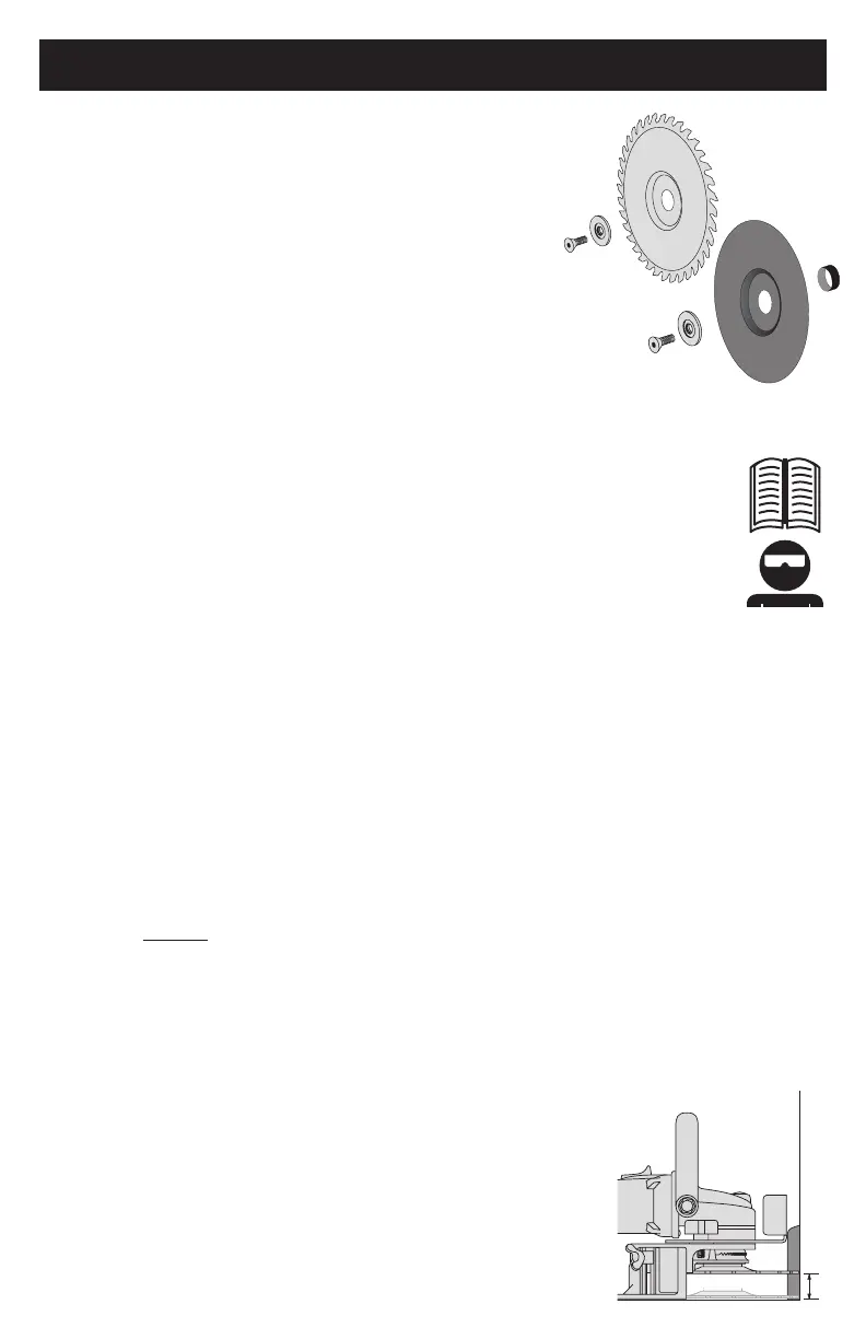 f. DO NOT allow the blade to contact the floor or substrate material. This can damage the