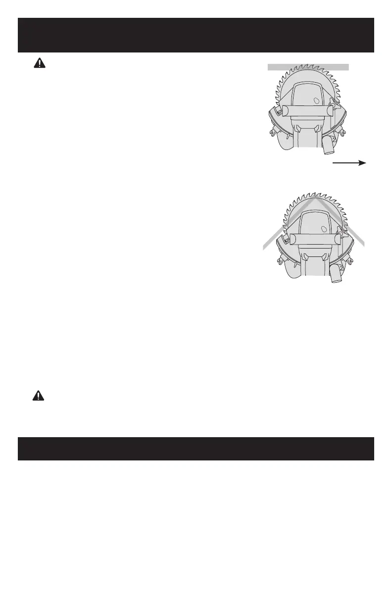 base molding. Never run the saw over carpeting or pad. Do not allow the blade to contact the