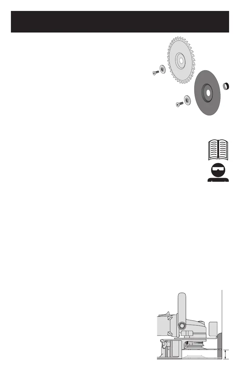 2. S’assurer que la scie soit débranchée. S’assurer que le Protecteur de Lame et la poignée