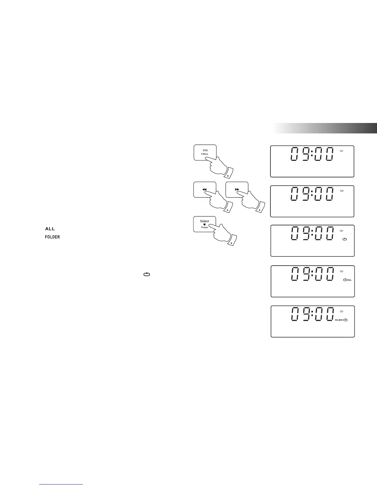 3. Press the Tuning Up or Down buttons until the required repeat option