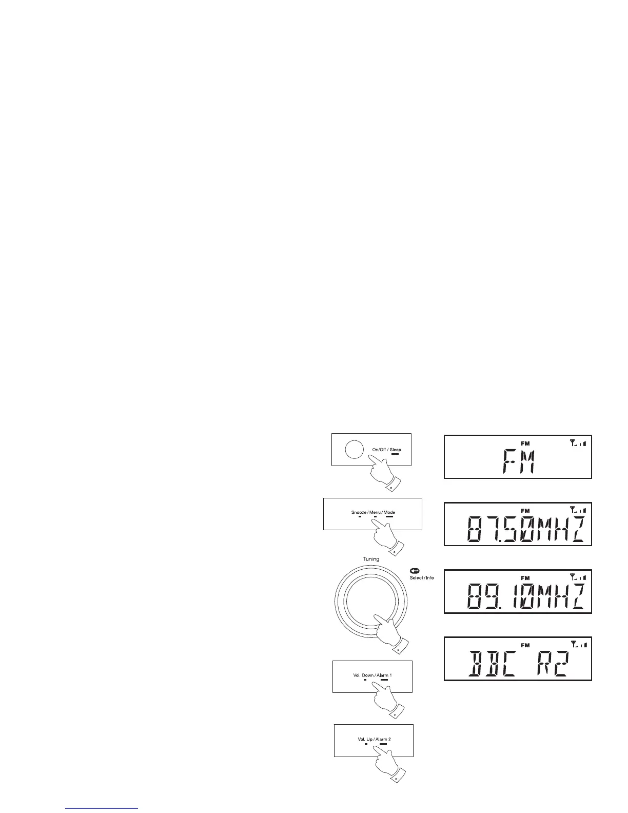 3. Repeatedly, press and hold the Mode button until the FM mode is