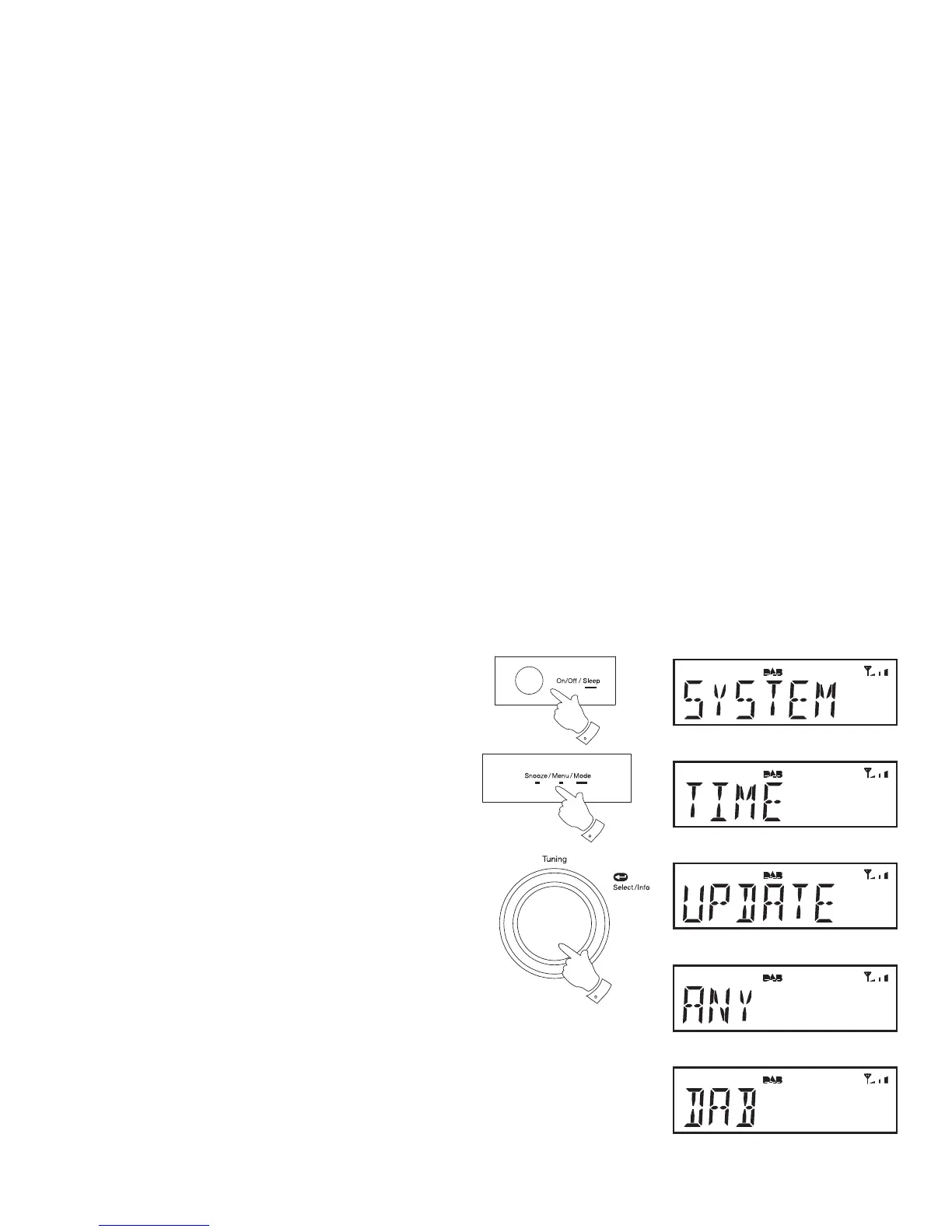 5. Rotate the Tuning control until 'UPDATE' appears on the display.
