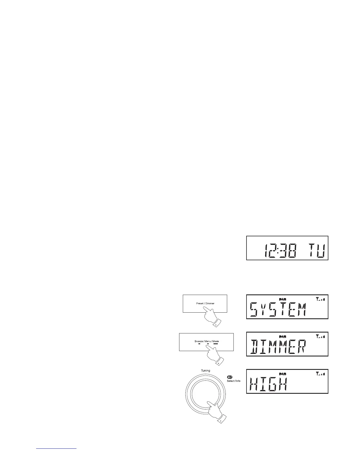 4. Rotate the Tuning control until 'DIMMER' appears on the display.