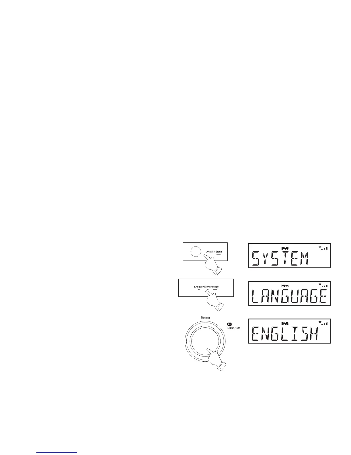 5. Rotate the Tuning control until 'LANGUAGE' appears on the display.