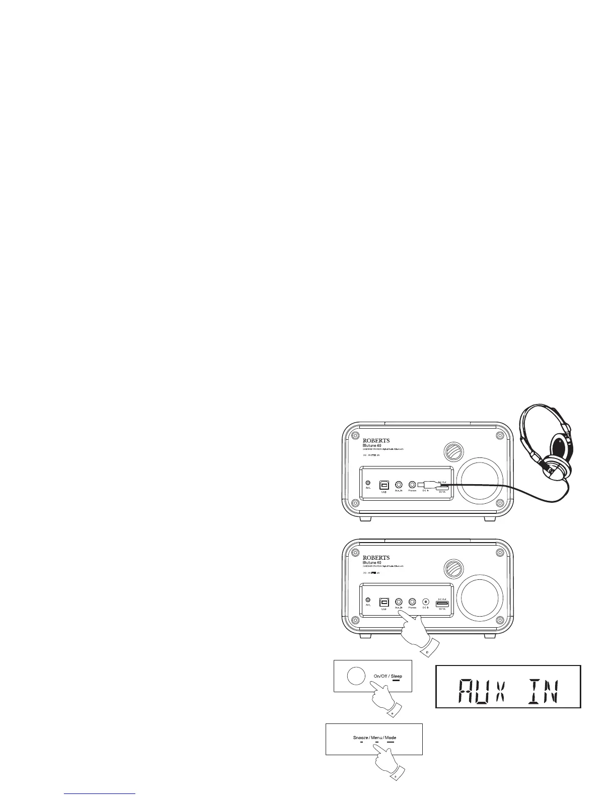 5. Remove the cable from the Auxiliary input socket or press and hold