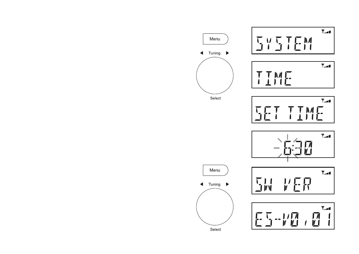 3. Rotate and press the Tuning control to select 6<67(0 'TIME', 'SET