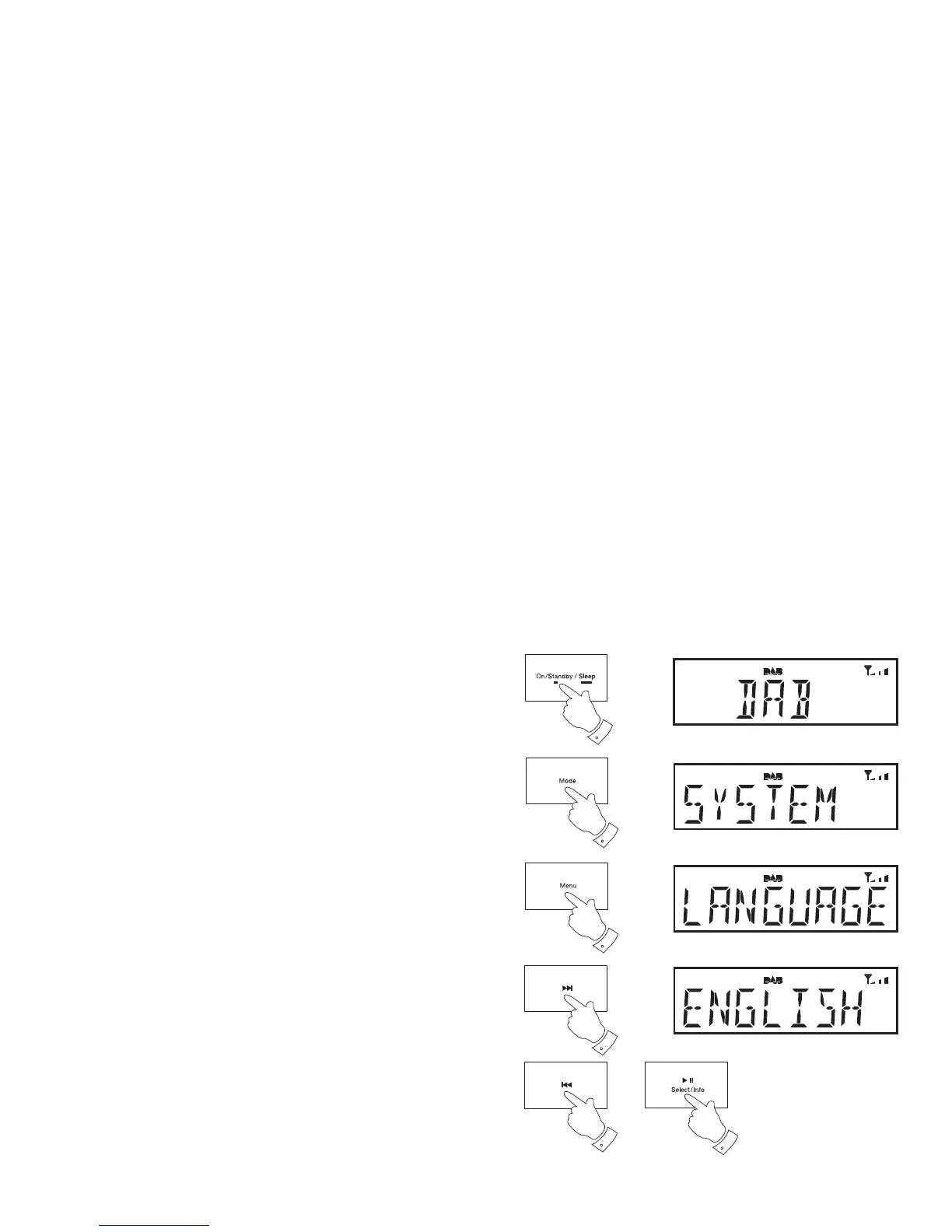 6. Press and release the Tuning Up or Down buttons until 'LANGUAGE'