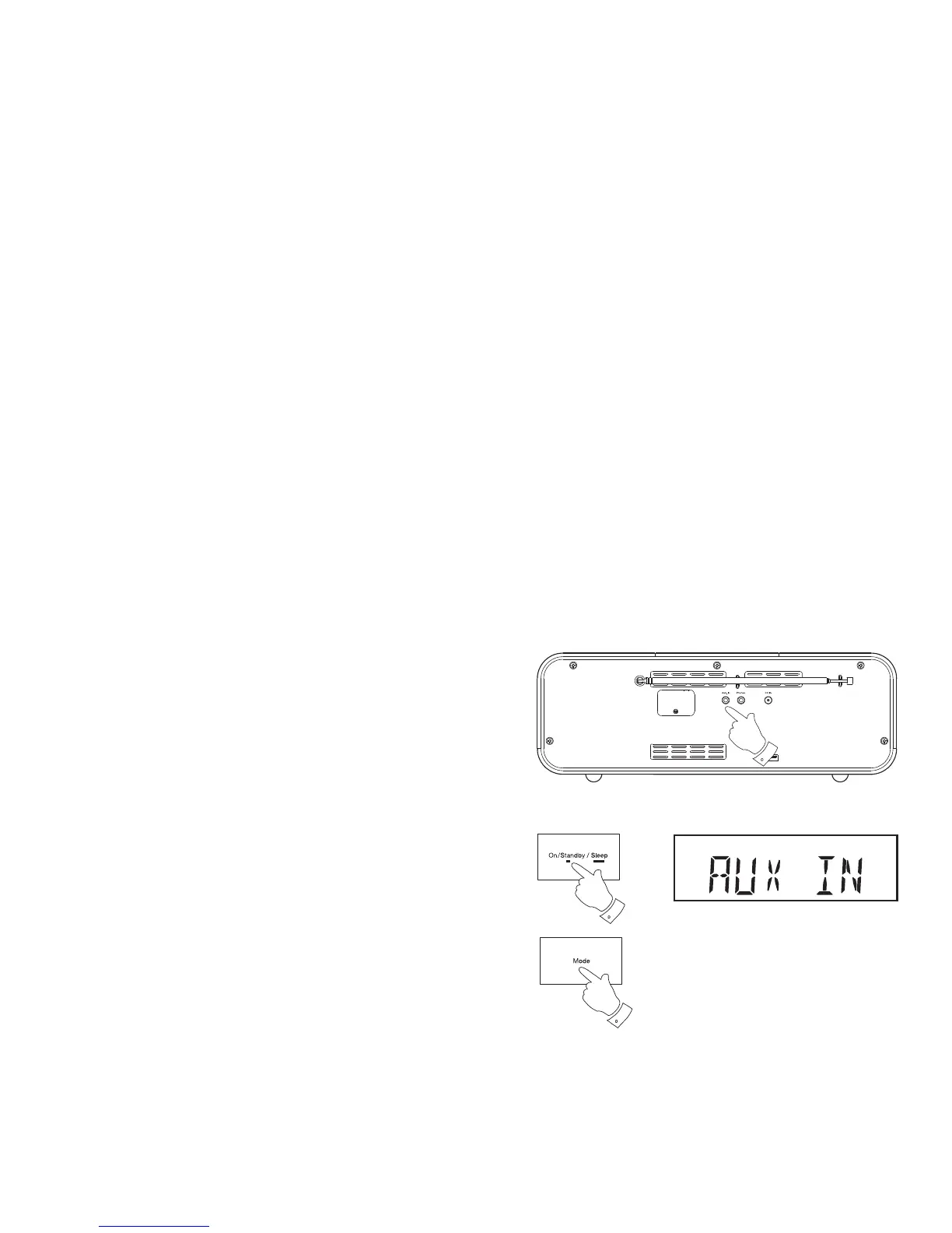 3. Press and release the Mode button until the display shows 'AUX IN'.