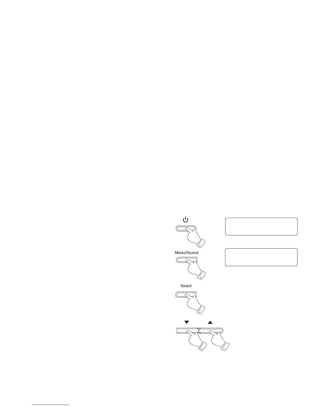 2. Repeatedly, press and hold the Source button to select either the FM