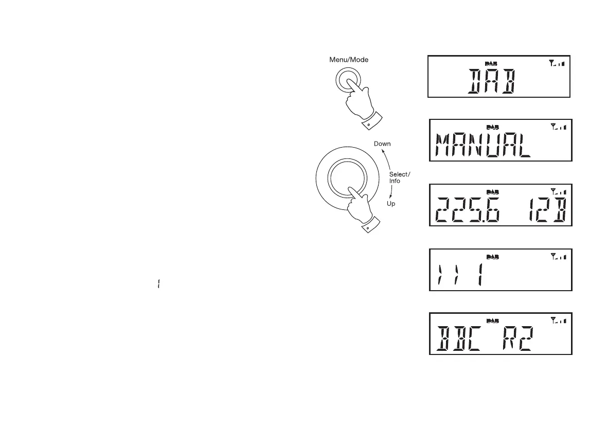 Manual tuning allows you to tune your radio to a particular DAB frequency