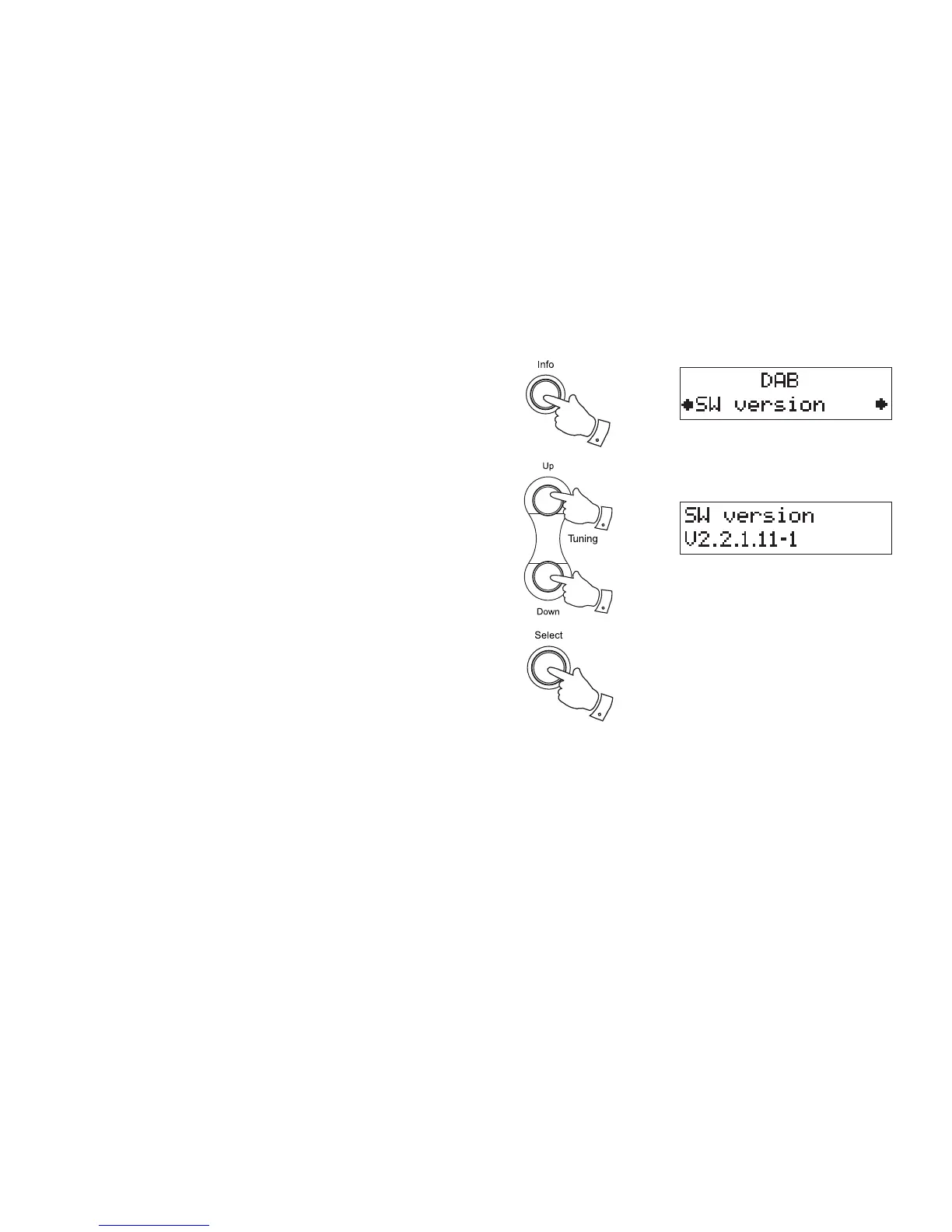 2. Press the Tuning Up or Down buttons until 'DAB SW version' appears