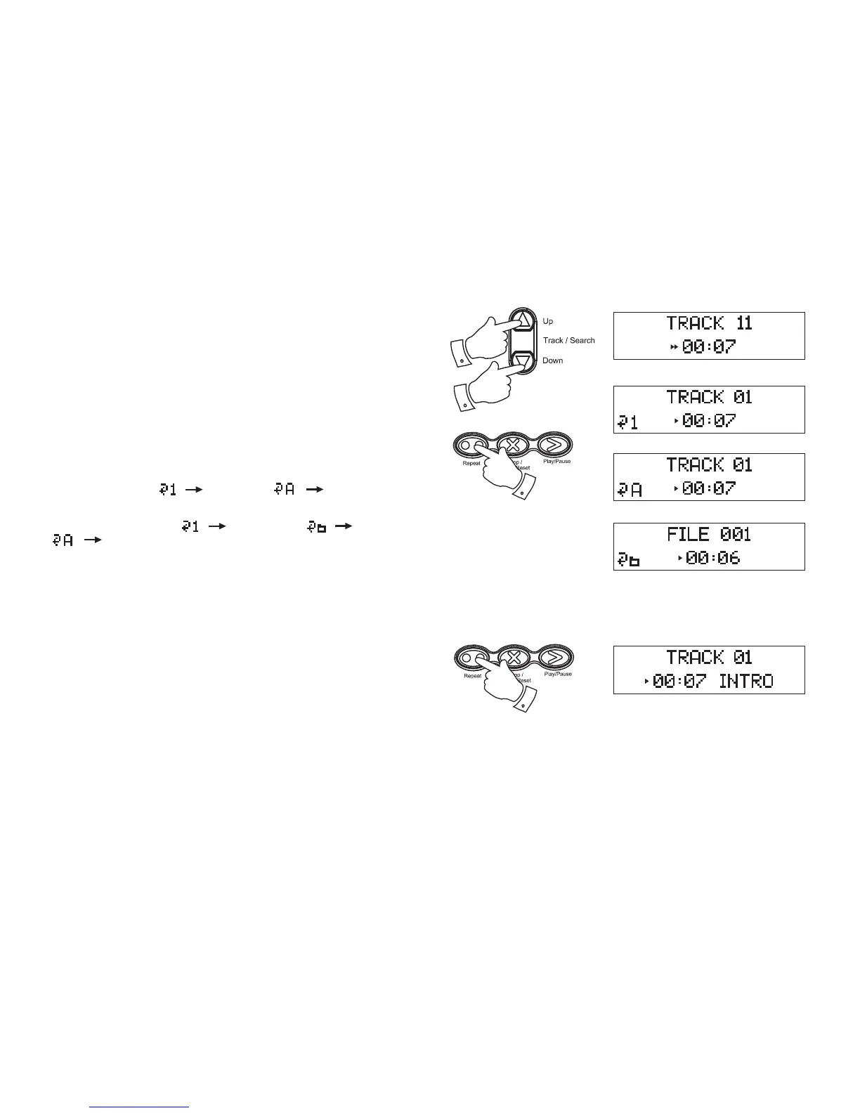 1. When in the stop mode, press and hold the Repeat button to play