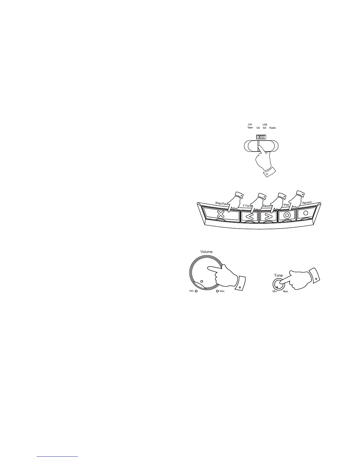 5. Depress the Play key and adjust the Volume and Tone controls to