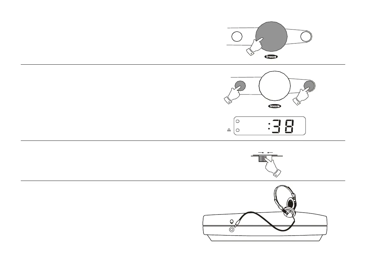 The radio or buzzer alarm can be silenced for 7 minutes by pressing the
