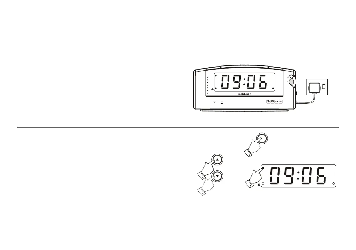 1. Place your clock radio on a flat surface. Plug the power cord into the wall