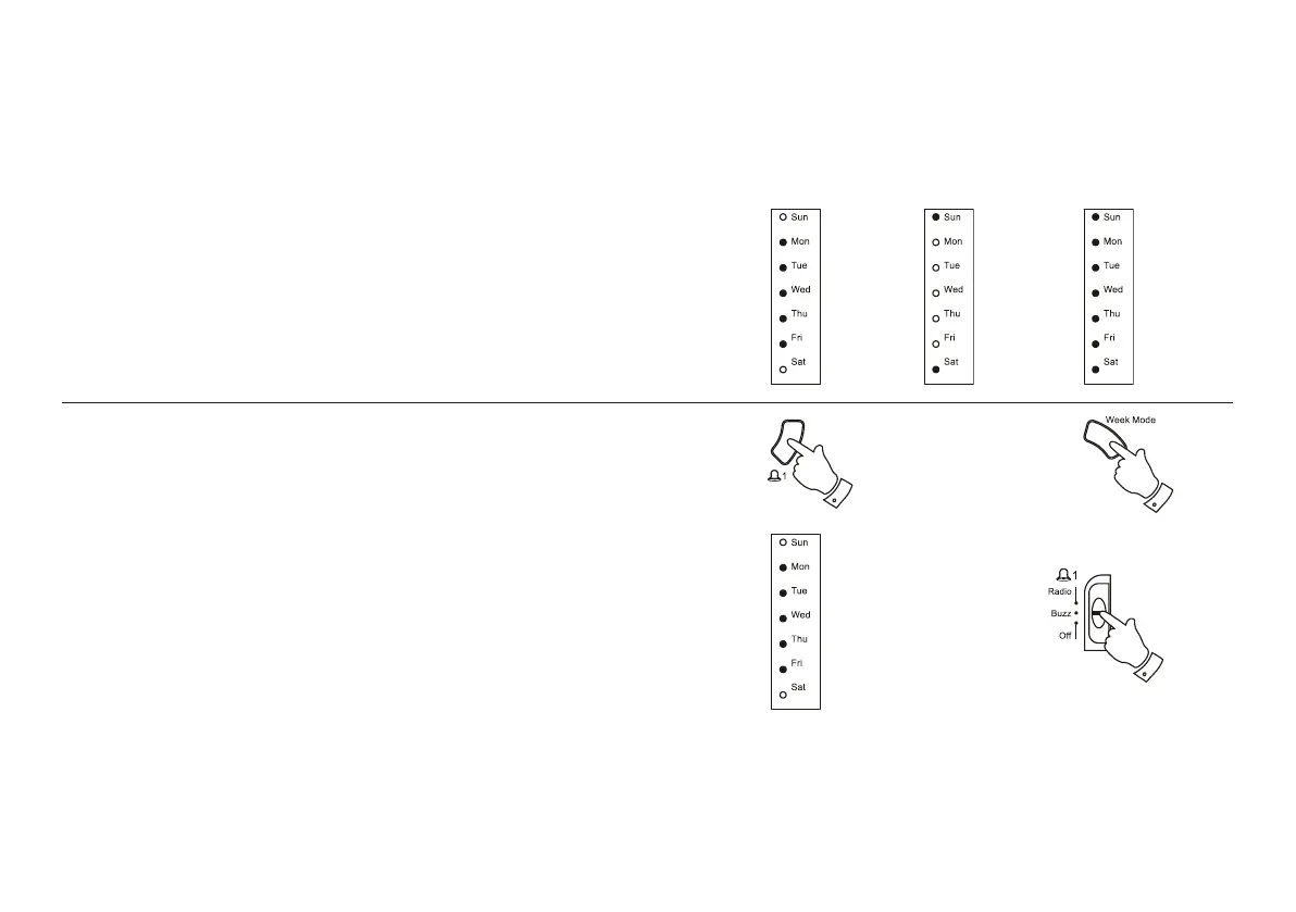 3. Set the Alarm 1 or Alarm 2 switch to the Buzz or Radio position.