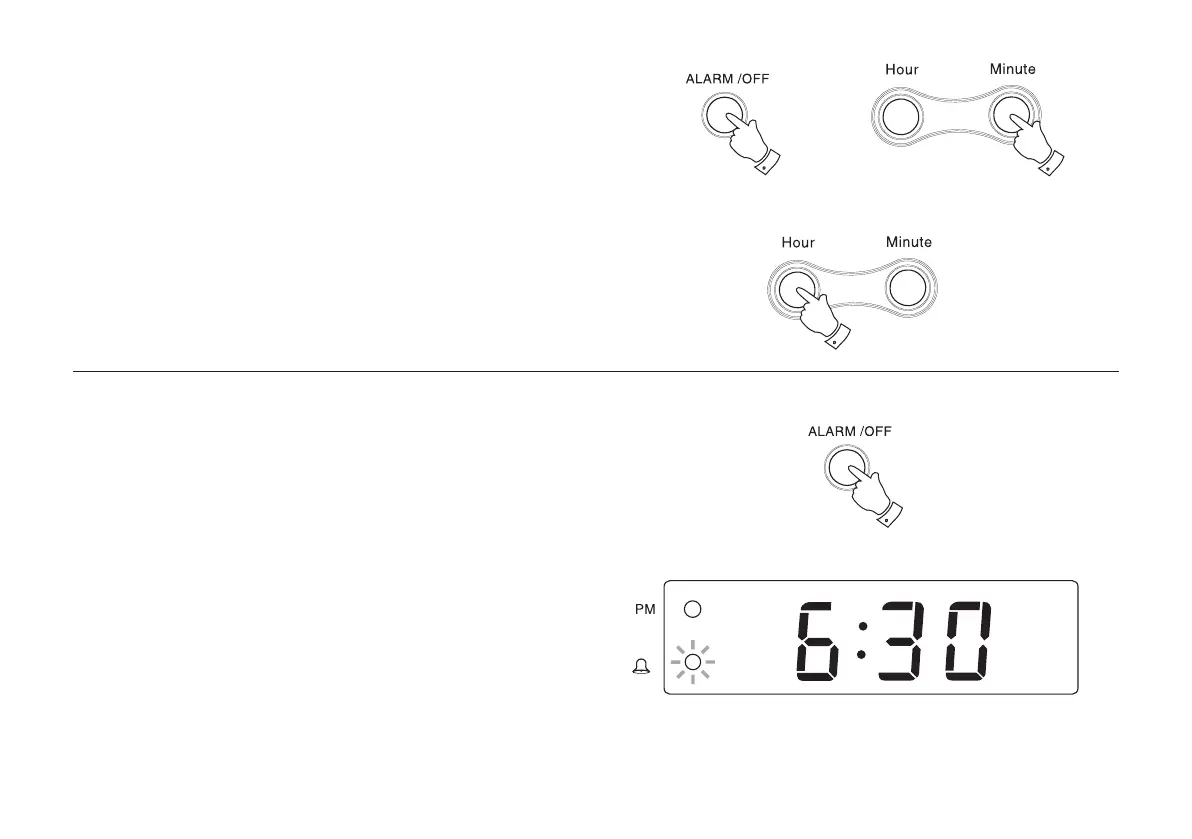 2. Whilst holding down the ALARM/OFF button press the Hour or
