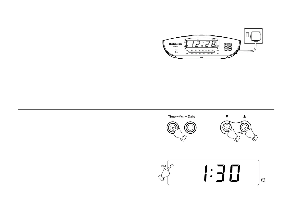 1. Placeyourclockradioonaatsurface.Plugthepowercordintothe