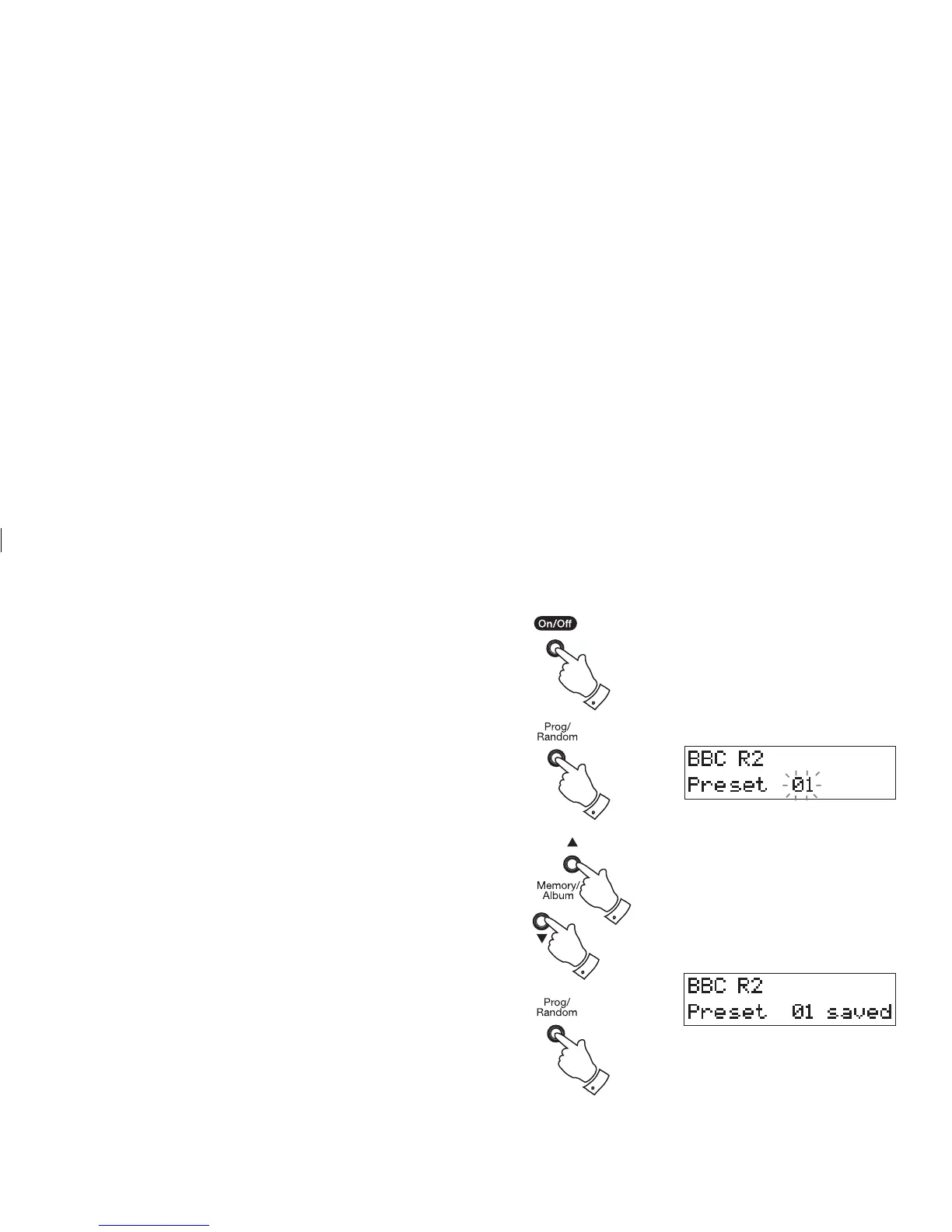 example, "Preset 1 saving" and then "Preset 1 saved". The station