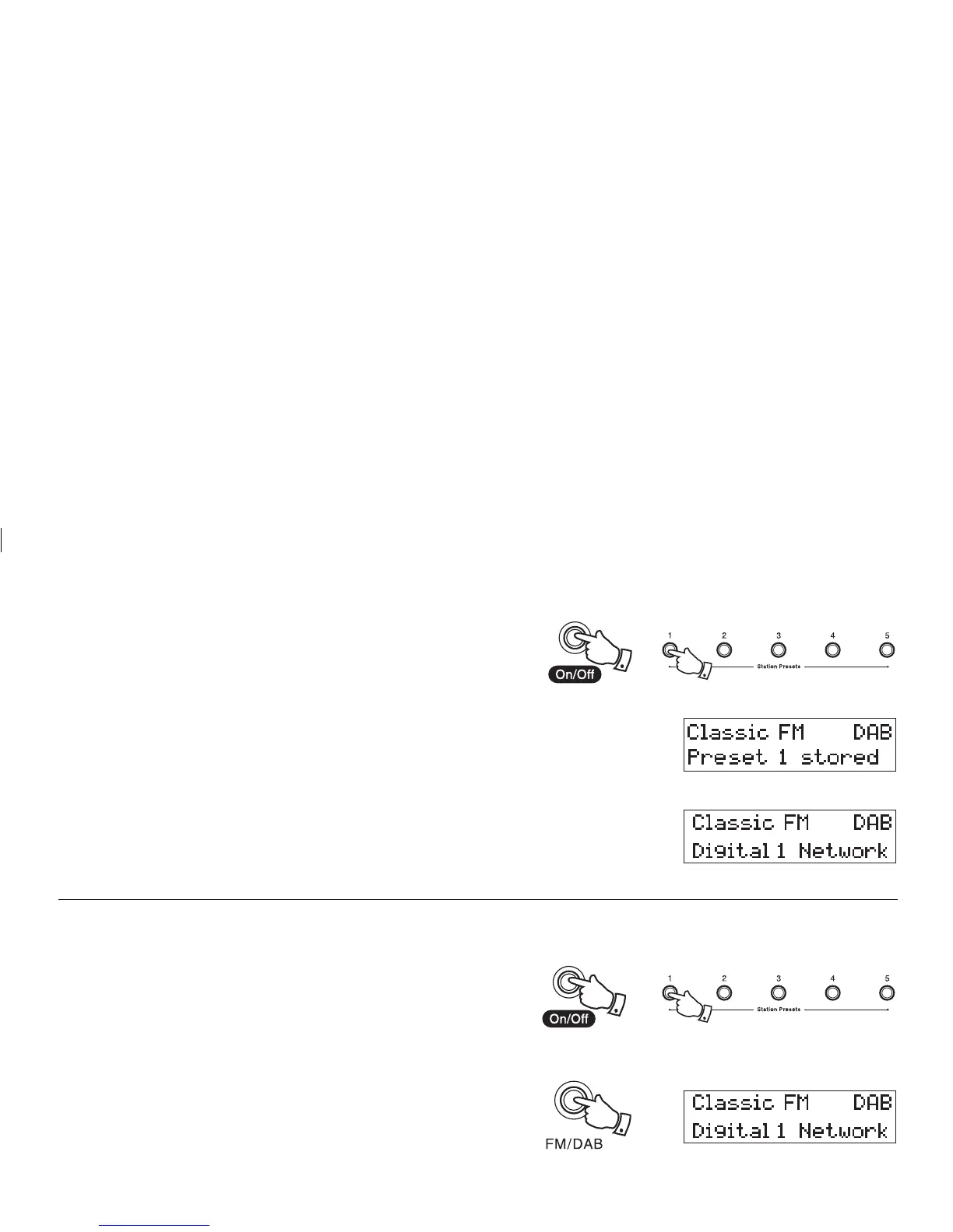 1. Press the On/Off button to switch on your radio.