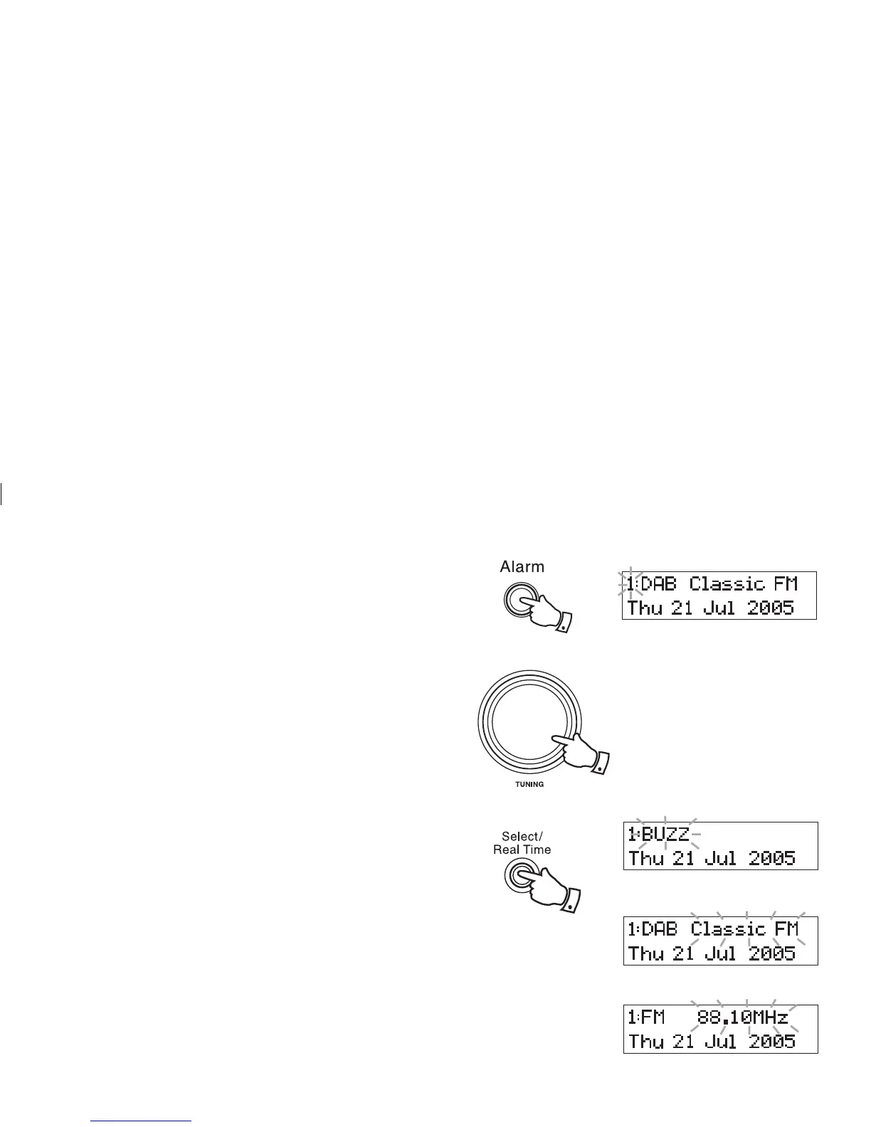 4. Rotate the Tuning control to select the required alarm mode. Select