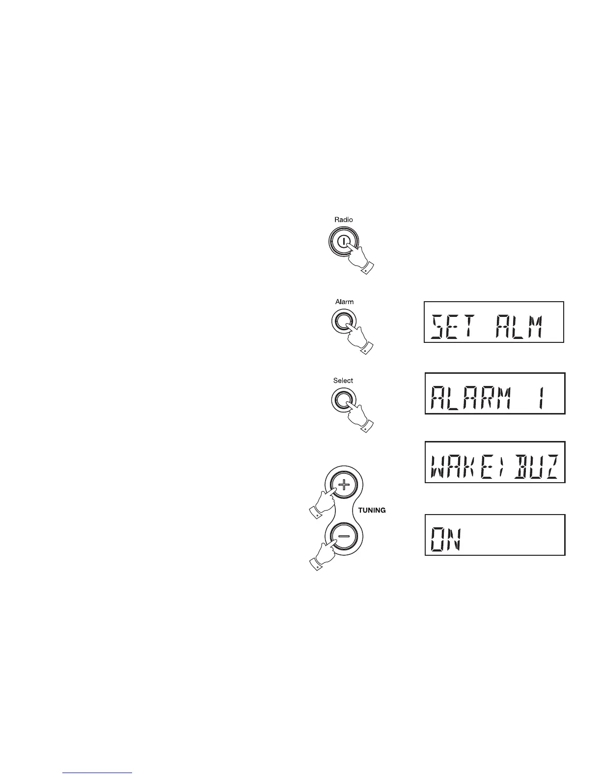 2. Press the Alarm button once. The display will show “SET ALM”.