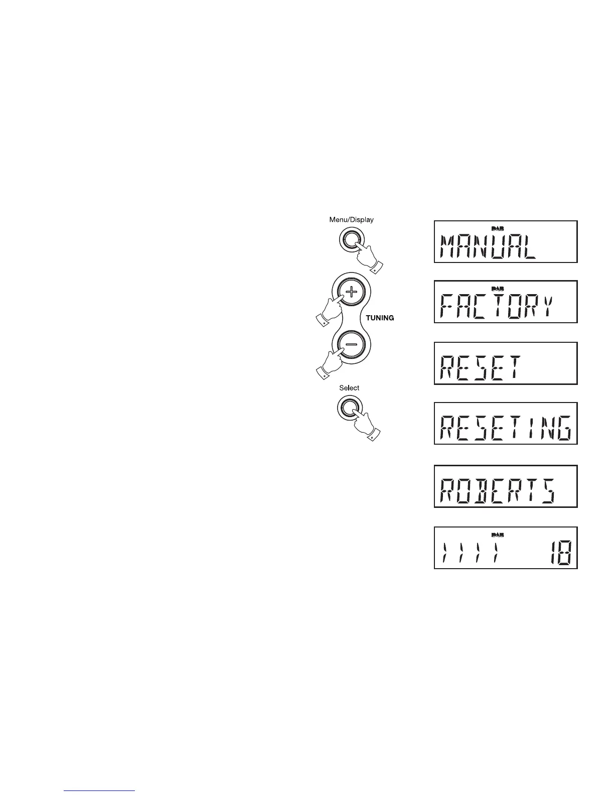 2. Press the Tuning up or down buttons until “FACTORY” appears on