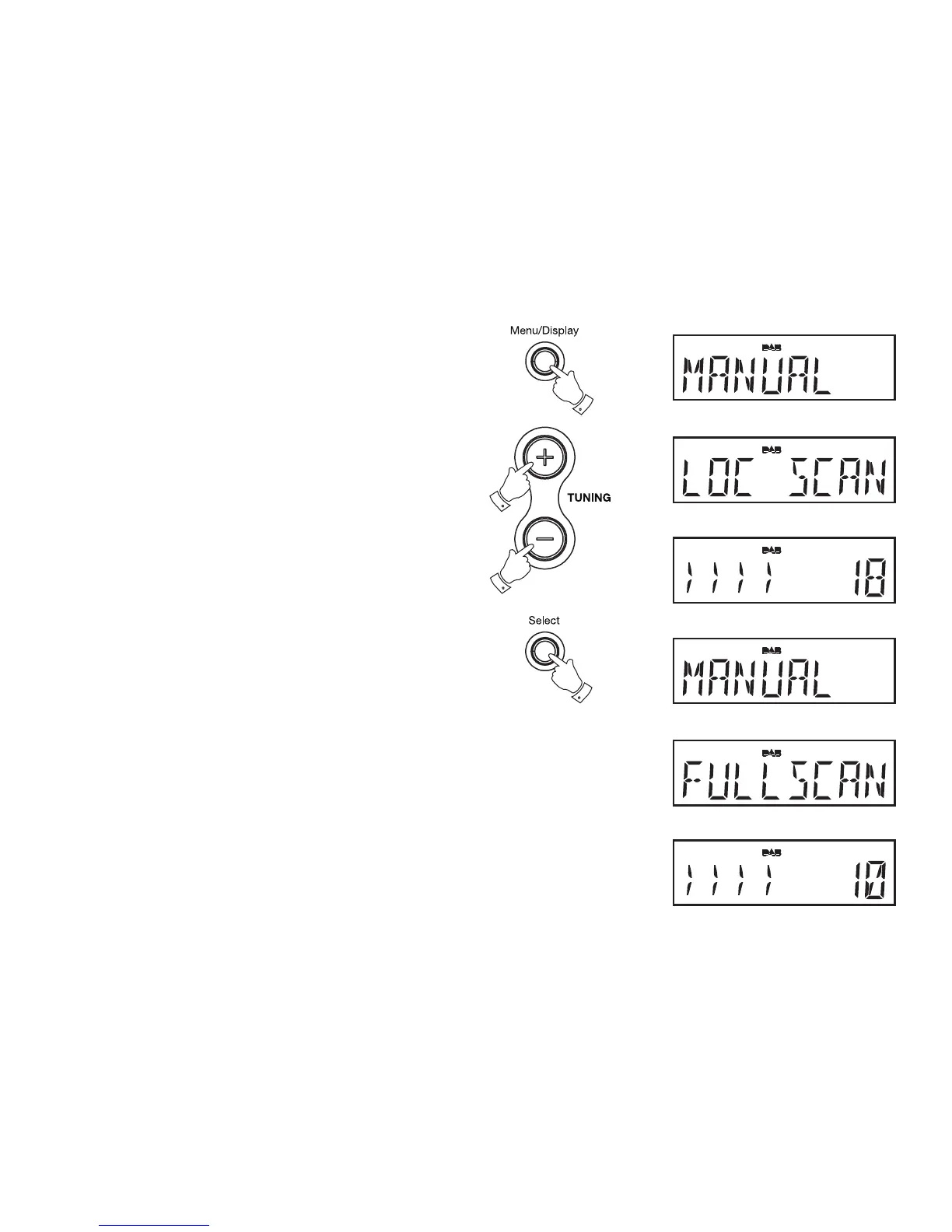 4. To carry out a full scan of the entire DAB Band III frequencies, press