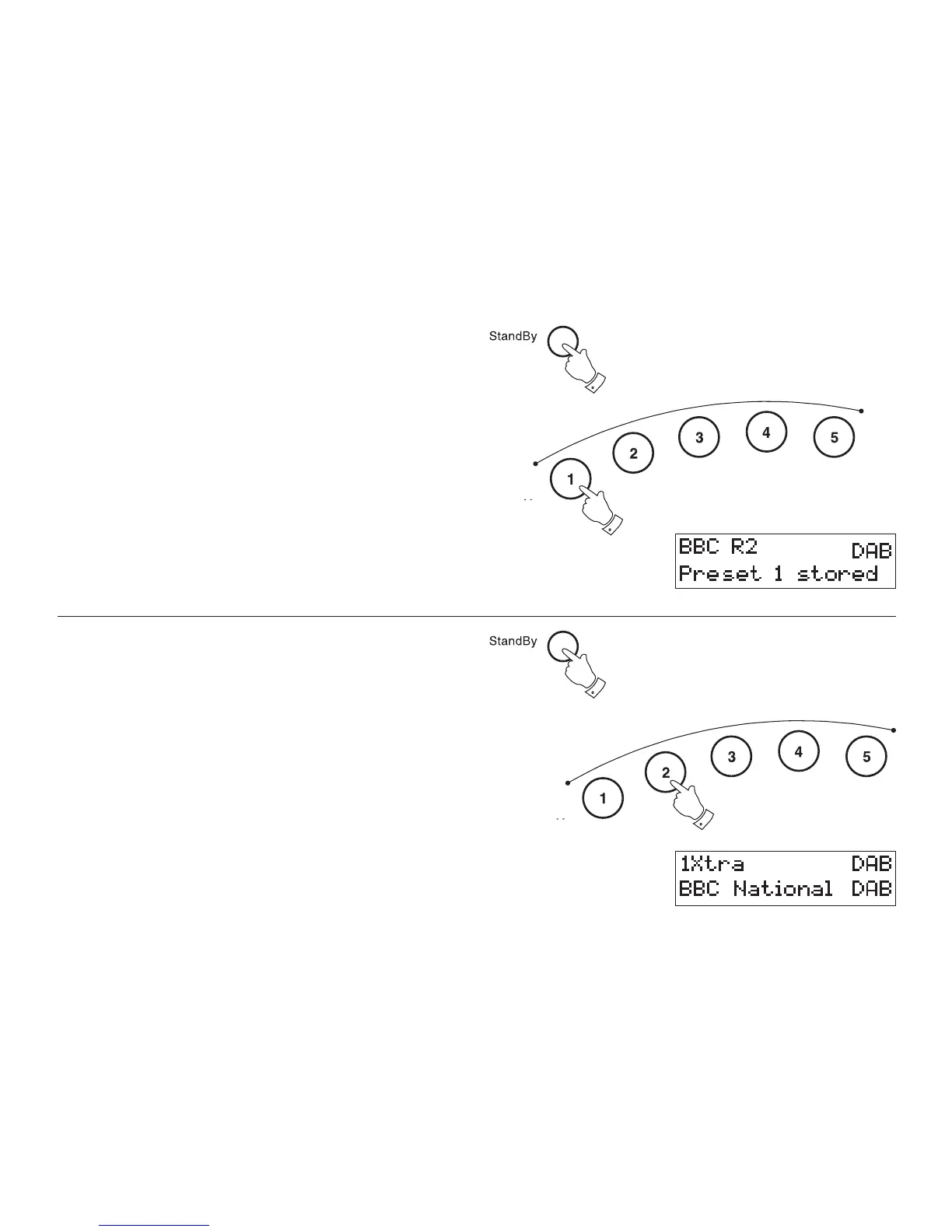 shows e.g. "Preset 1 stored". The station will be stored under the