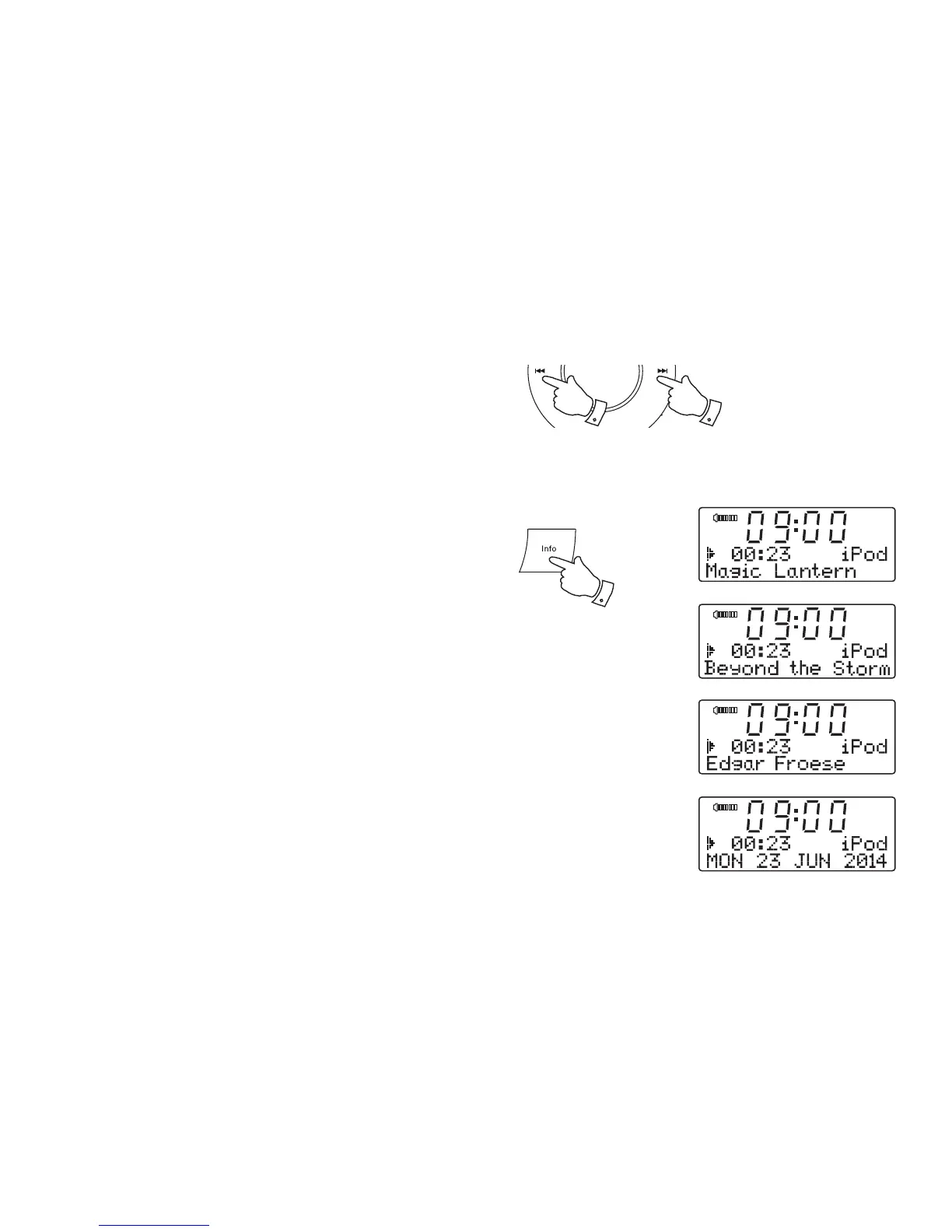 Your clock radio has a range of display options when in iPod mode:-