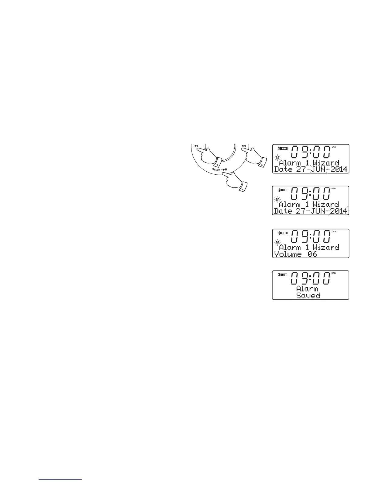 19. Press and release the Select button to confi rm the alarm settings.