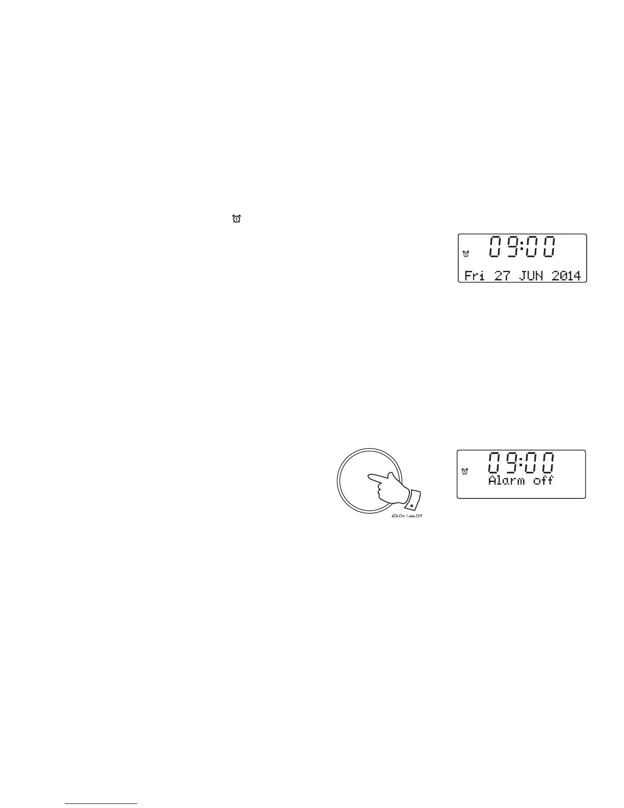 To cancel the alarm press the On / Off control or one of the alarm buttons.