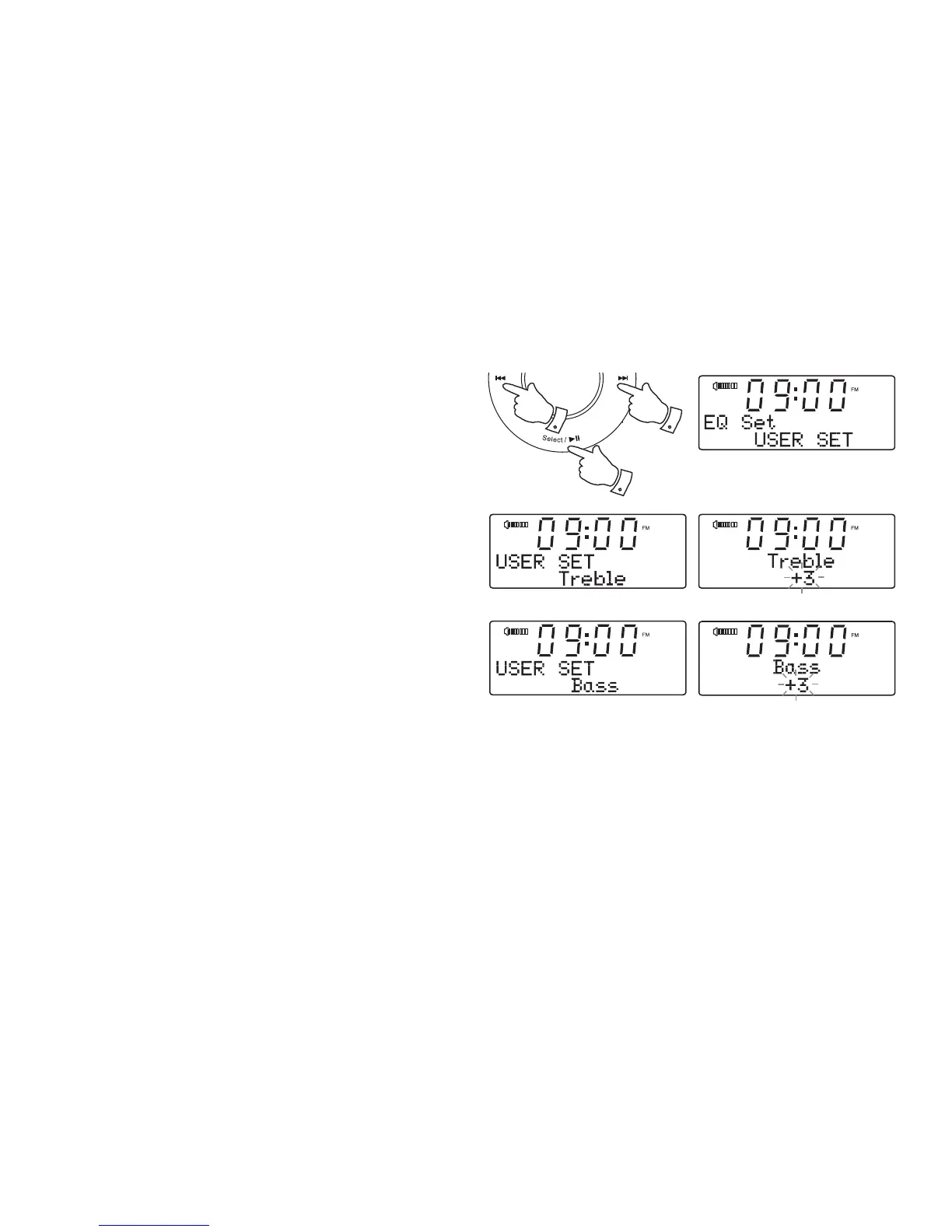 Up or Down buttons until 'Treble' shows on the display.