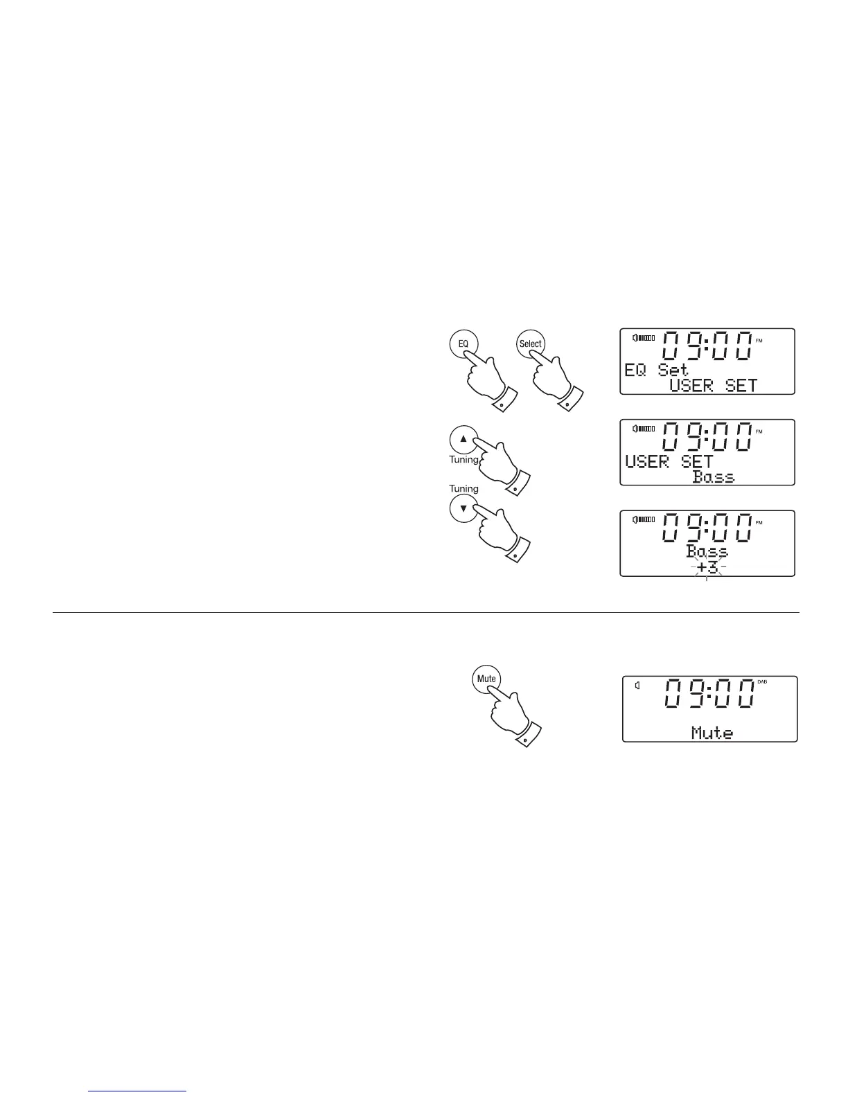 4. To adjust the Bass setting press and release the Tuning Up or Down