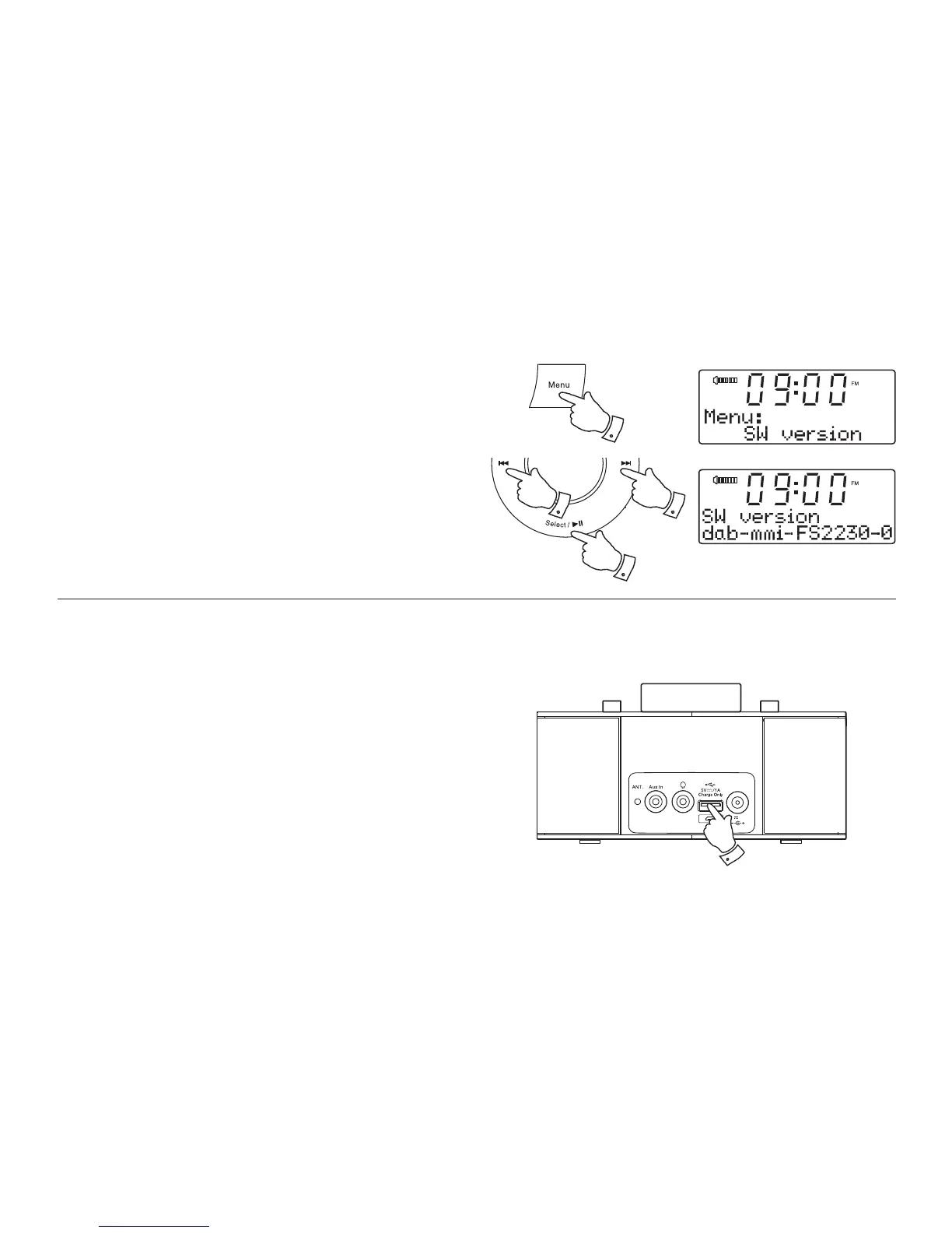 2. Press the Tuning Up or Down buttons until 'SW version' appears on