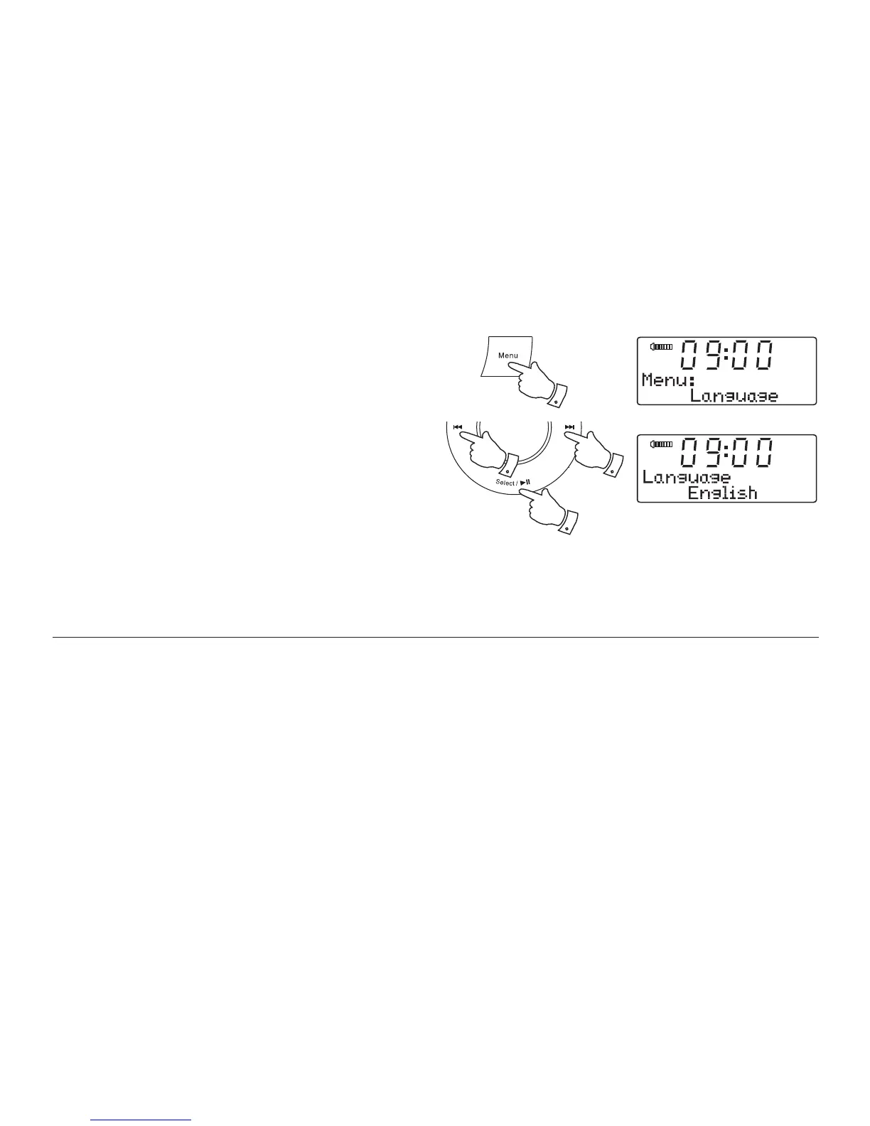 3. Press and release the Select button to enter the language adjustment