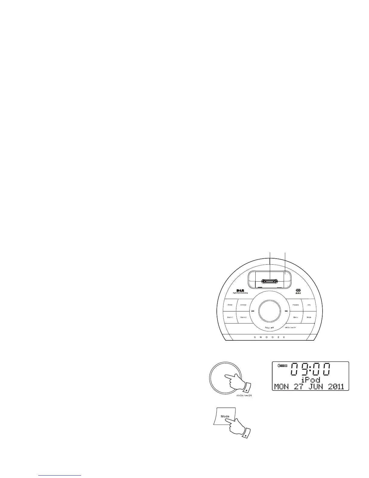 Note: Your clock radio is able to recharge your iPod's internal battery. Your