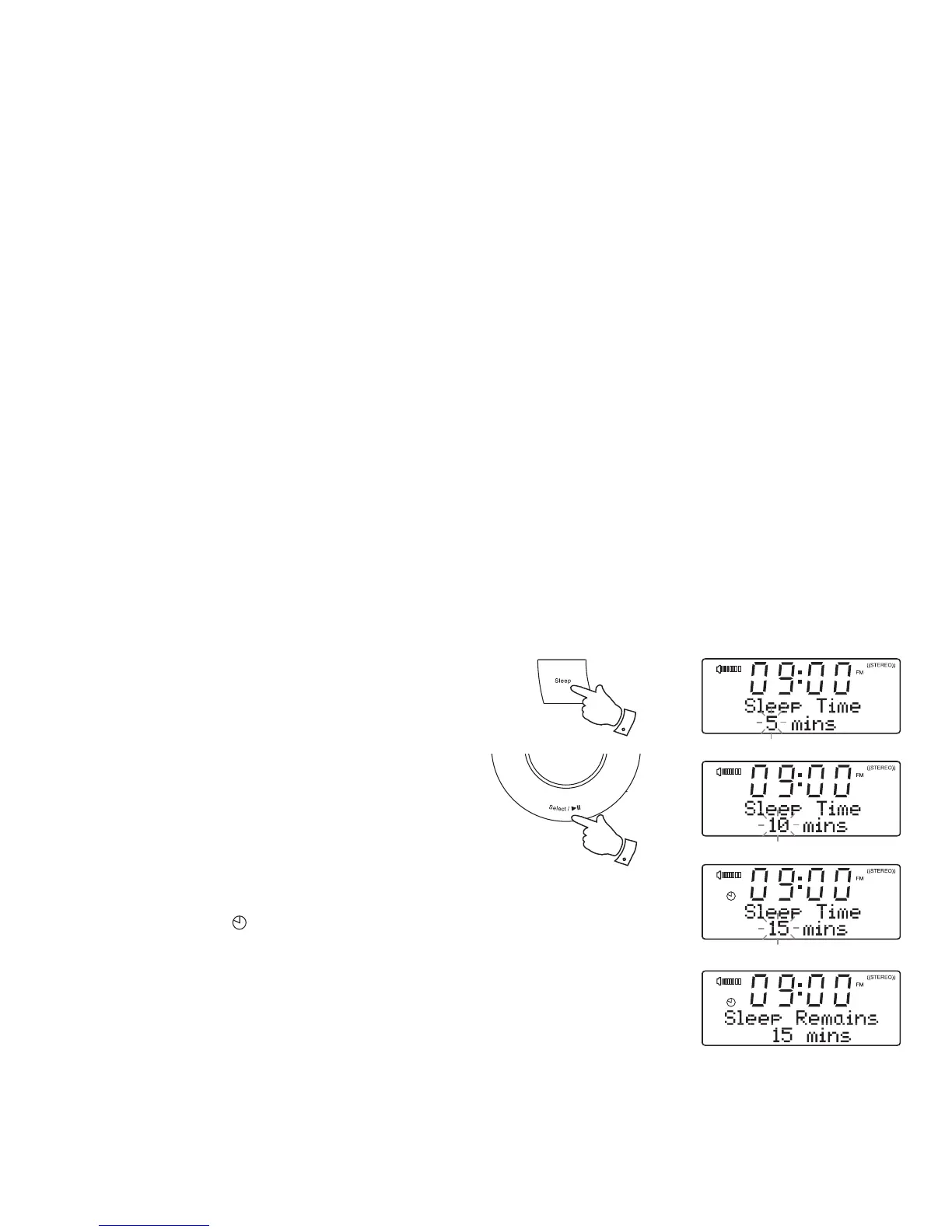 1. When using your clock radio, press the Sleep button. 'Sleep Time'