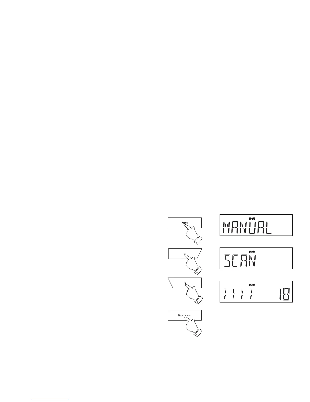 2. Press the Tuning Up or Down buttons until the display shows 'SCAN'.
