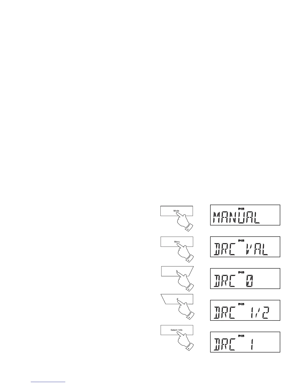 5. Press the Tuning Up or Down buttons to select the required DRC setting